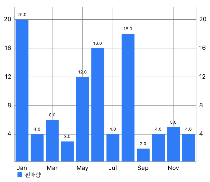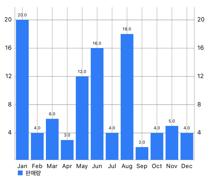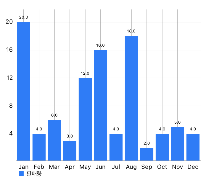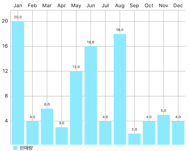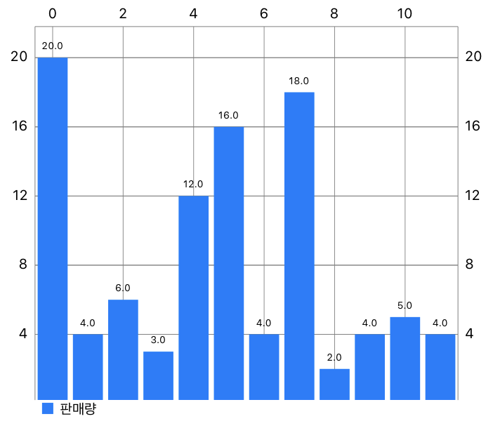 let chartDataSet = BarChartDataSet(entries: dataEntries, label: "판매량")