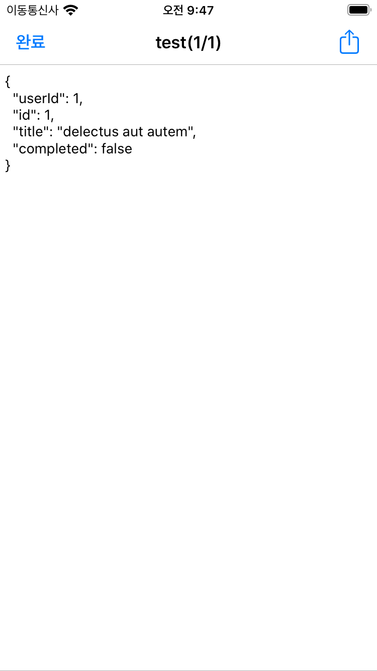 실행해보면 아까 JSON샘플 주소에 있는 정보를 잘 가져옵니다.