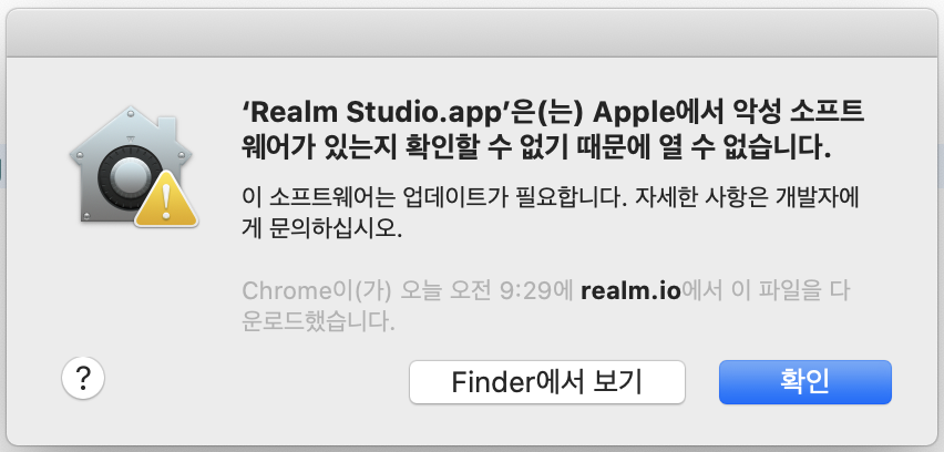 다운받은 파일 열어서 왼쪽에 Realm Studio.app 을 오른쪽 Applications 폴더에 드래그 앤 드롭해주세요.