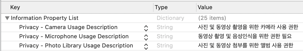 먼저 Info.plist 에 3가지 Key를 써주세요.