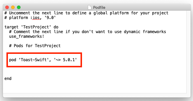 그러면 해당 경로에 Podfile이 생성됩니다.