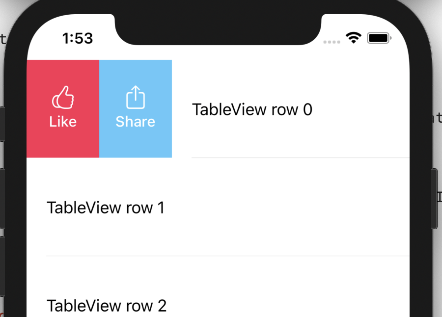 return UISwipeActionsConfiguration(actions:[like, share])