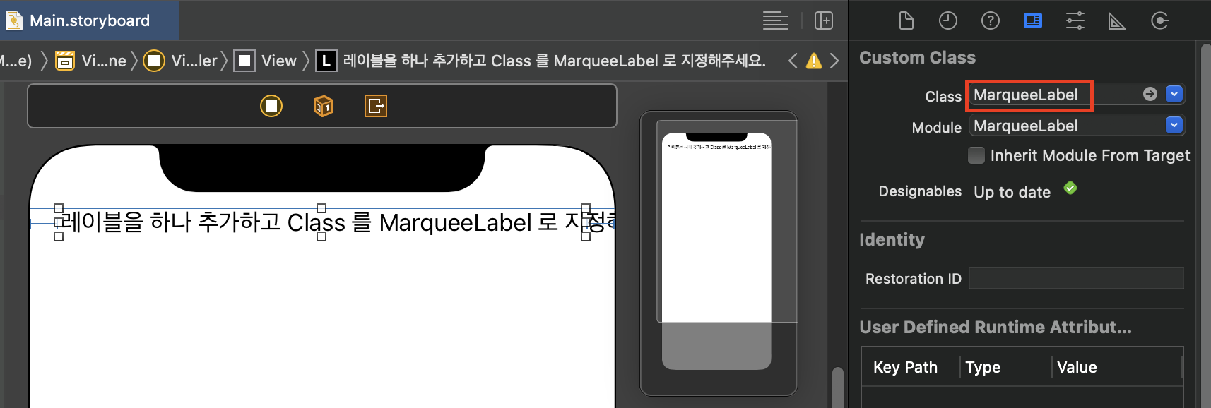 클래스를 MarqueeLabel 로 설정해주세요.