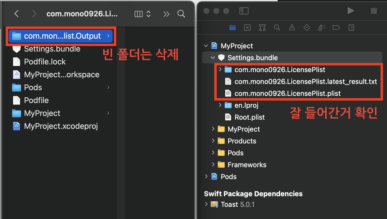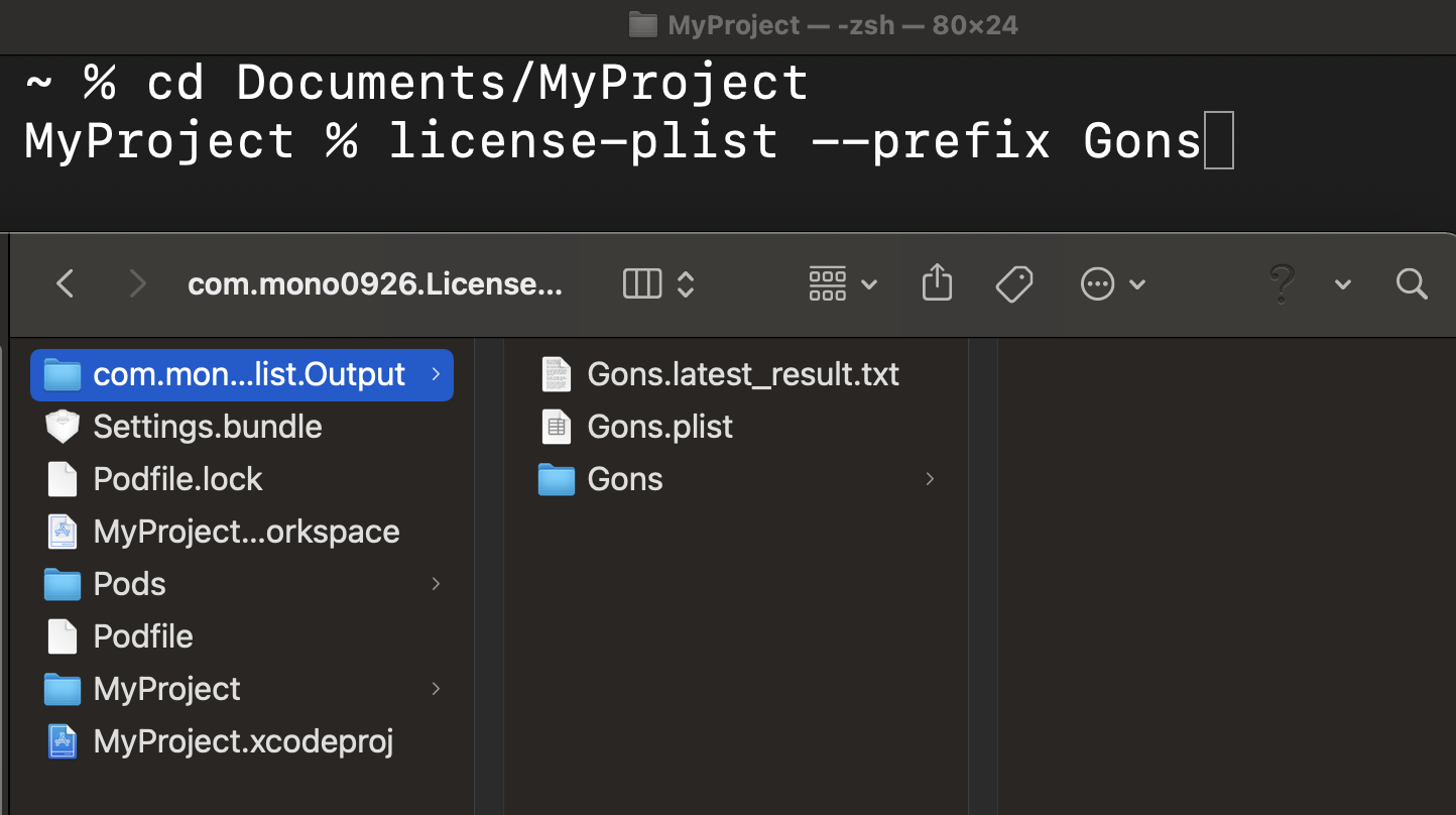 터미널에서 위에 명령어를 입력해서 LicensePlist 를 설치해주세요.