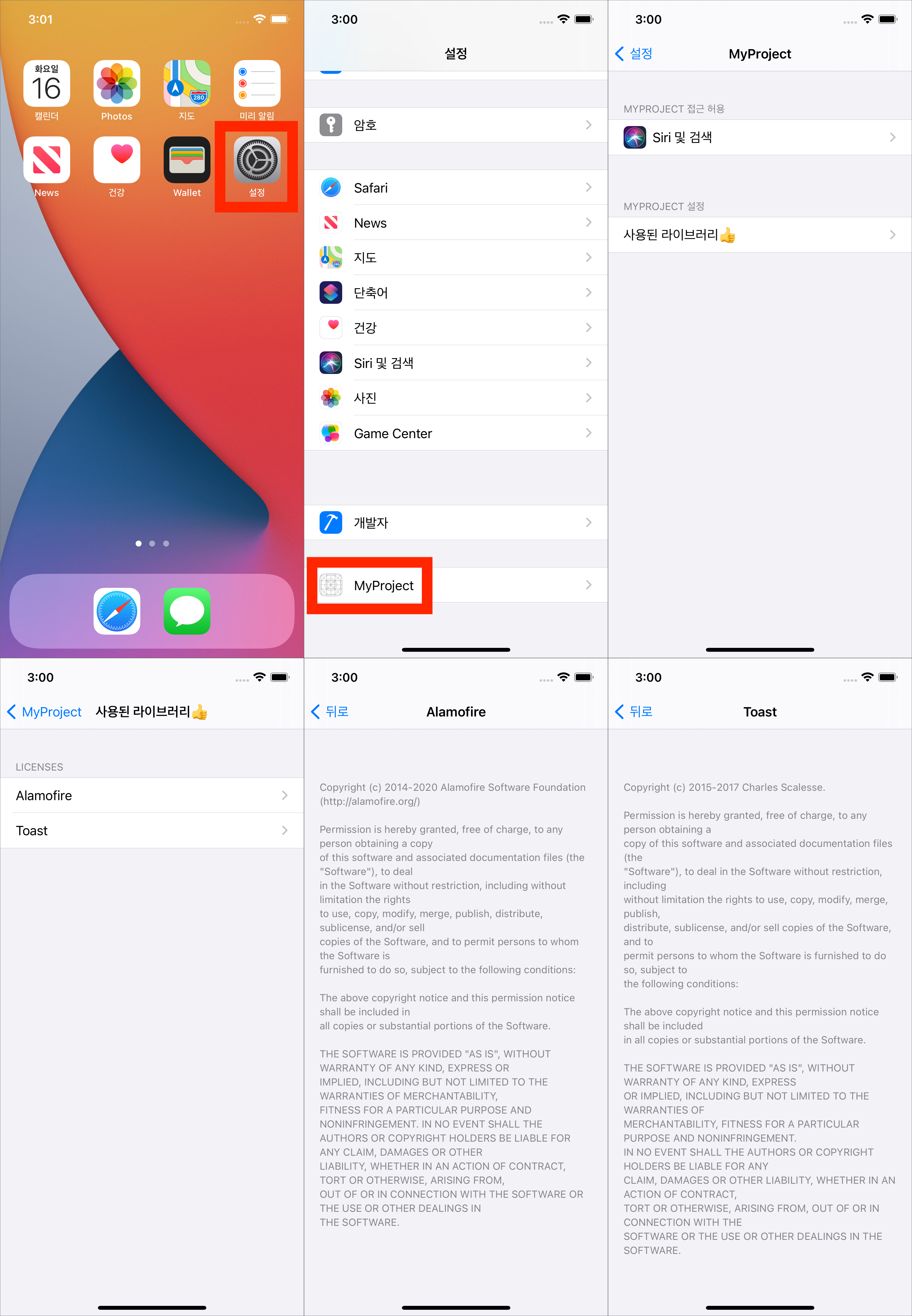 오늘은 사용된 라이브러리의 저작권 표시를 해보겠습니다.