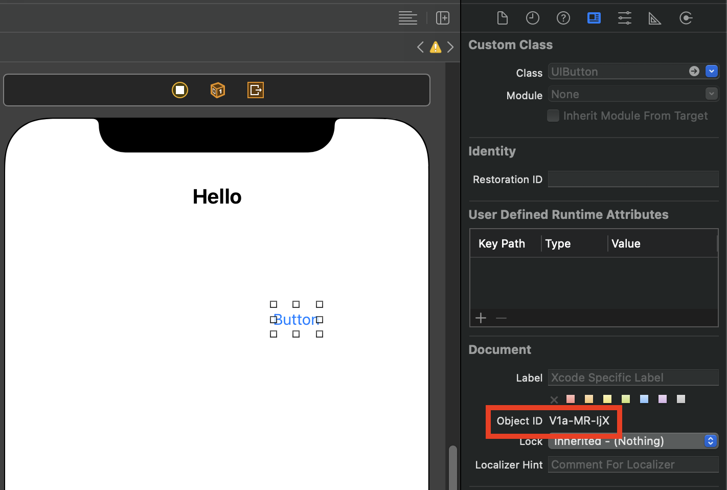 오브젝트 아이디는 스토리보드에서 확인할 수 있습니다.