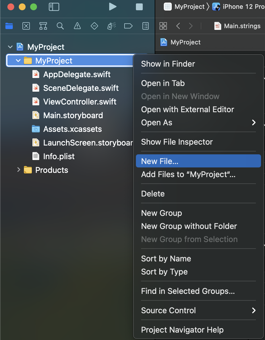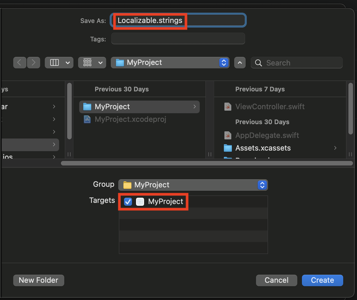 이름은 Localizable 로 입력해주세요.