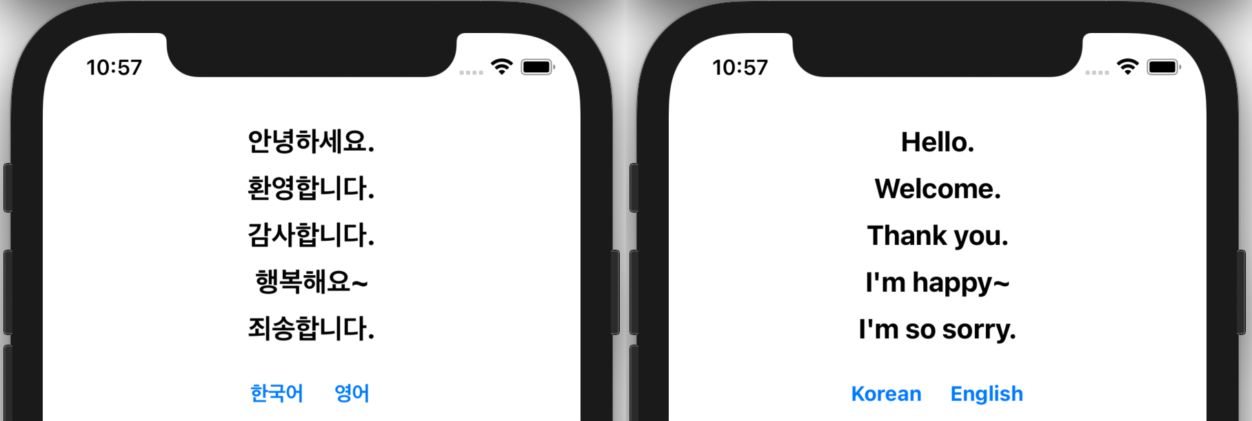 오늘은 앱을 종료하지 않고 언어변경을 해보겠습니다.