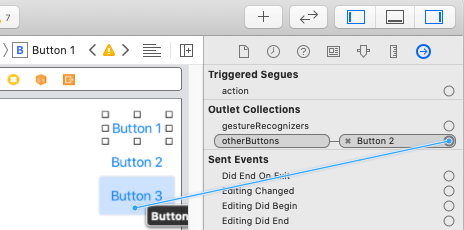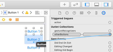 Outlet Collections 에 otherButtons 우측 + 버튼을