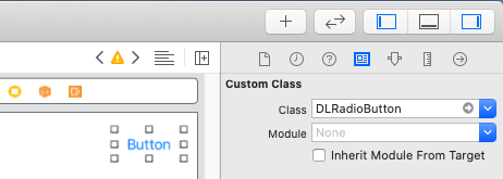 버튼을 넣은 후 Identity inspector 탭에 Custom Class 란에 DLRadioButton 을 넣어주세요.