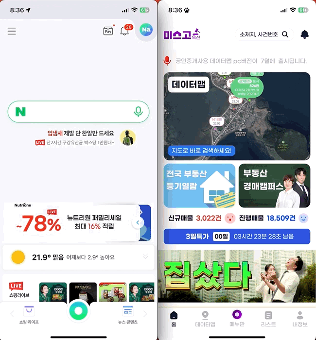네이버 앱에 보면 가운데 버튼 눌렀을 때 나오는 회전 메뉴가 있습니다.