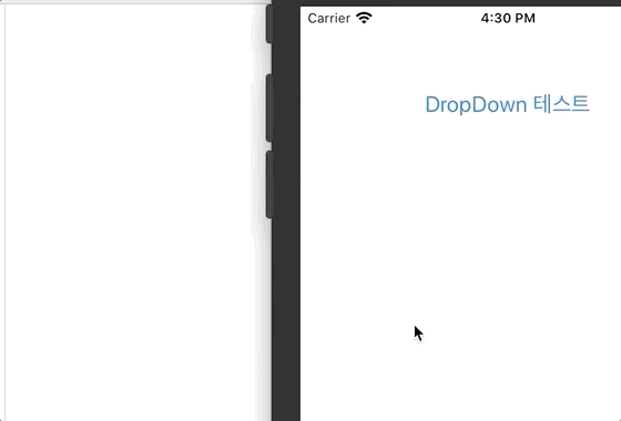 dropDown.dataSource = ["피자", "치킨", "족발보쌈", "치즈돈까스", "햄버거"]