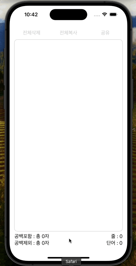 Text("공백제외 : 총 \(removeSpaceTextCount)자")